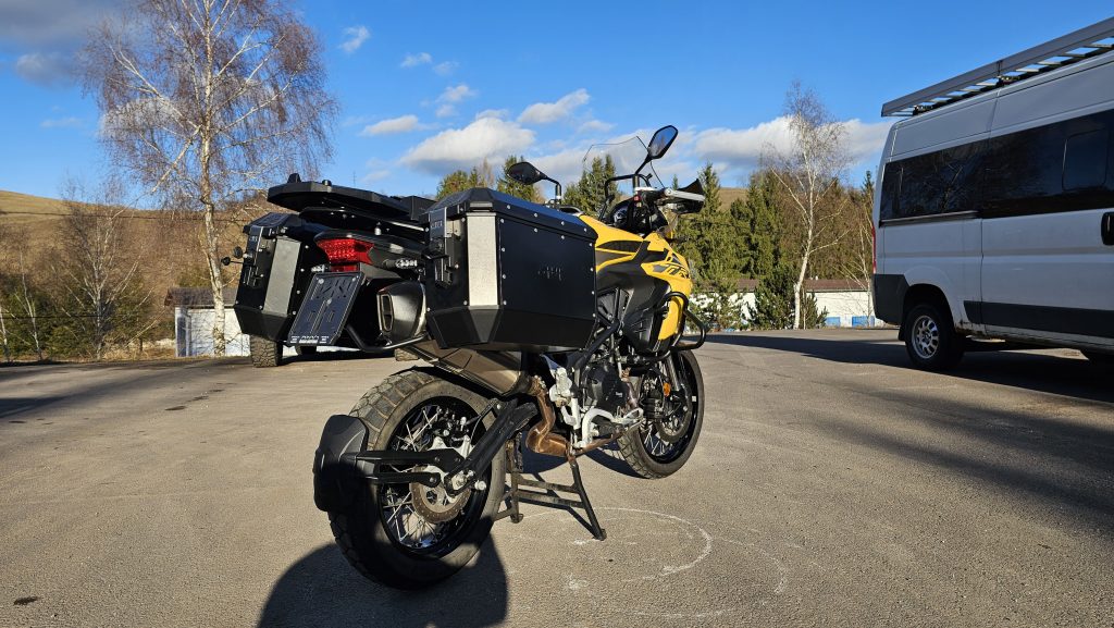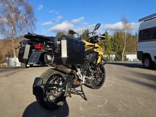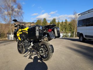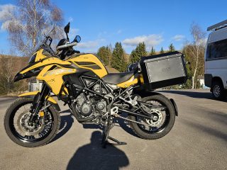 Predám veľmi peknú Benelli TRK 502 X rok výroby 2021, len 21 000Km! (Záruka na KM), ku motorke sú aj 2 veľmi pekné čierne hliníkové kufre, padacie rámy, zásuvka na dva USB vstupy, vypínateľné dvojkanálové ABS (predok aj zadok), kotúče AKO NOVÉ, dobrý dezén na pneu. S prihlásením je to úplne jednoduché a kľudne s tým pomôžem (hneď na druhý deň vybavená nová STK na 4 roky + KO aj preklady), Po dohode viem doviezť po celom SK až pred váš dom. Dovoz